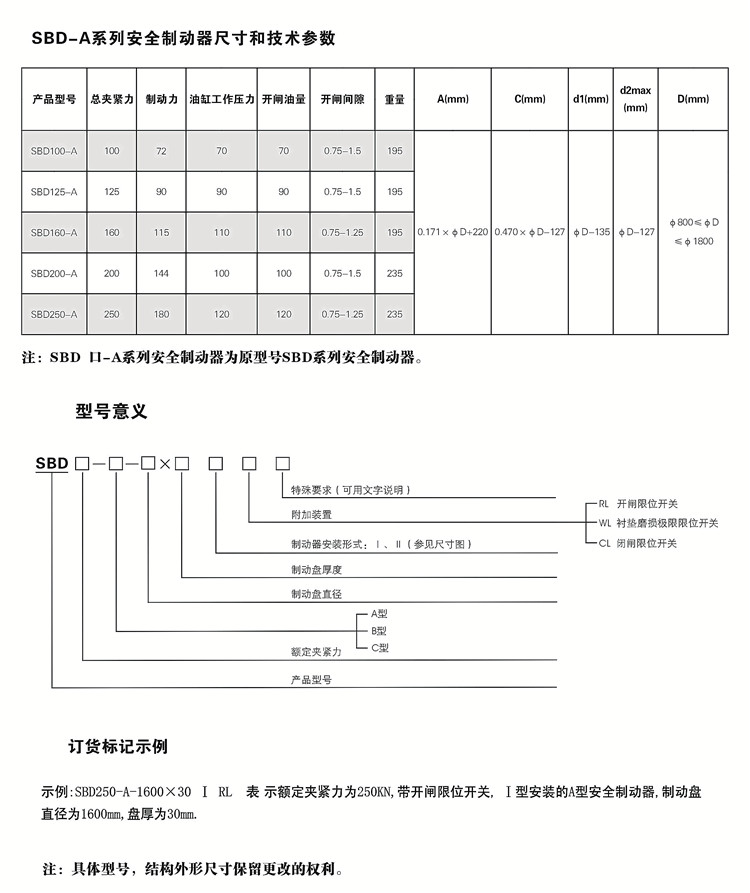 SBD-D液壓鉗盤式制動器